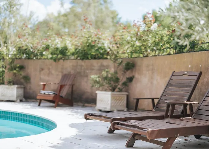 Outdoor pool with sun loungers